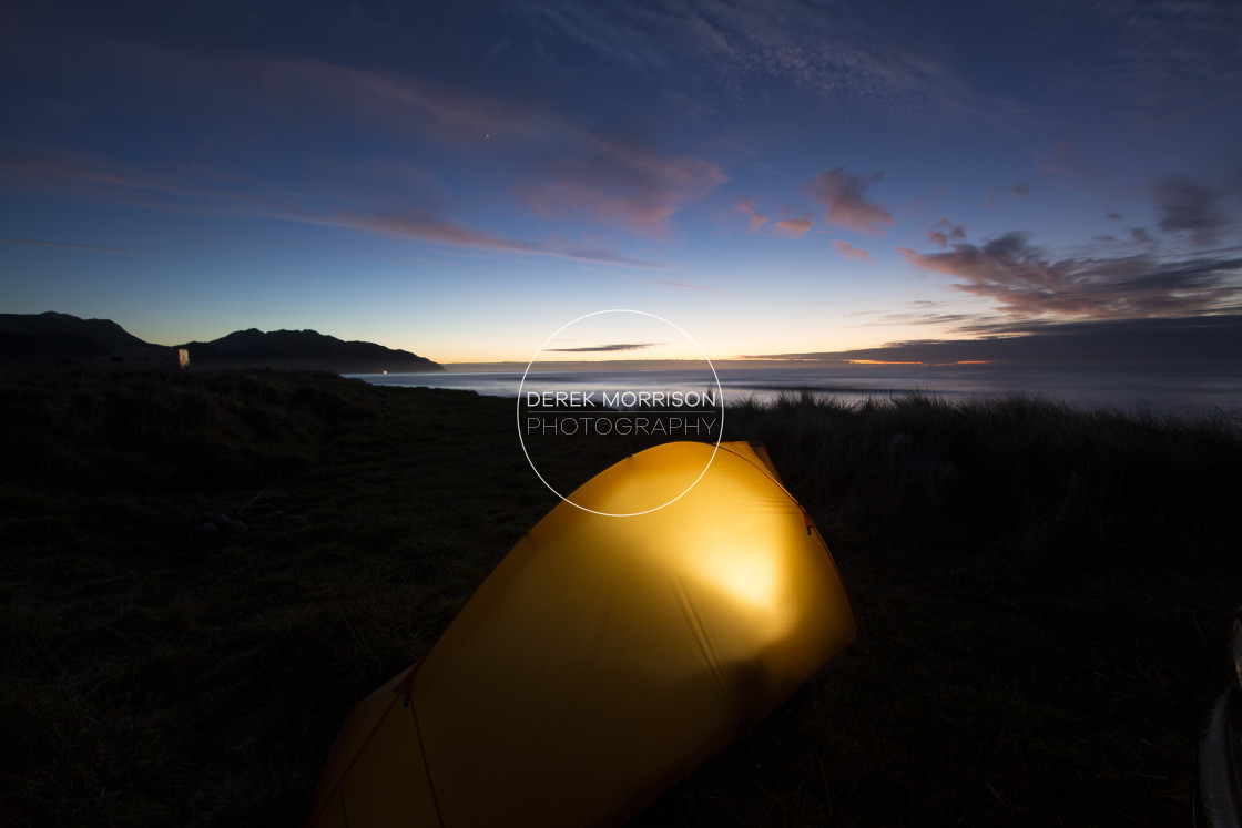 Campsite on the Kaikoura coast, Kaikoura, New Zealand.