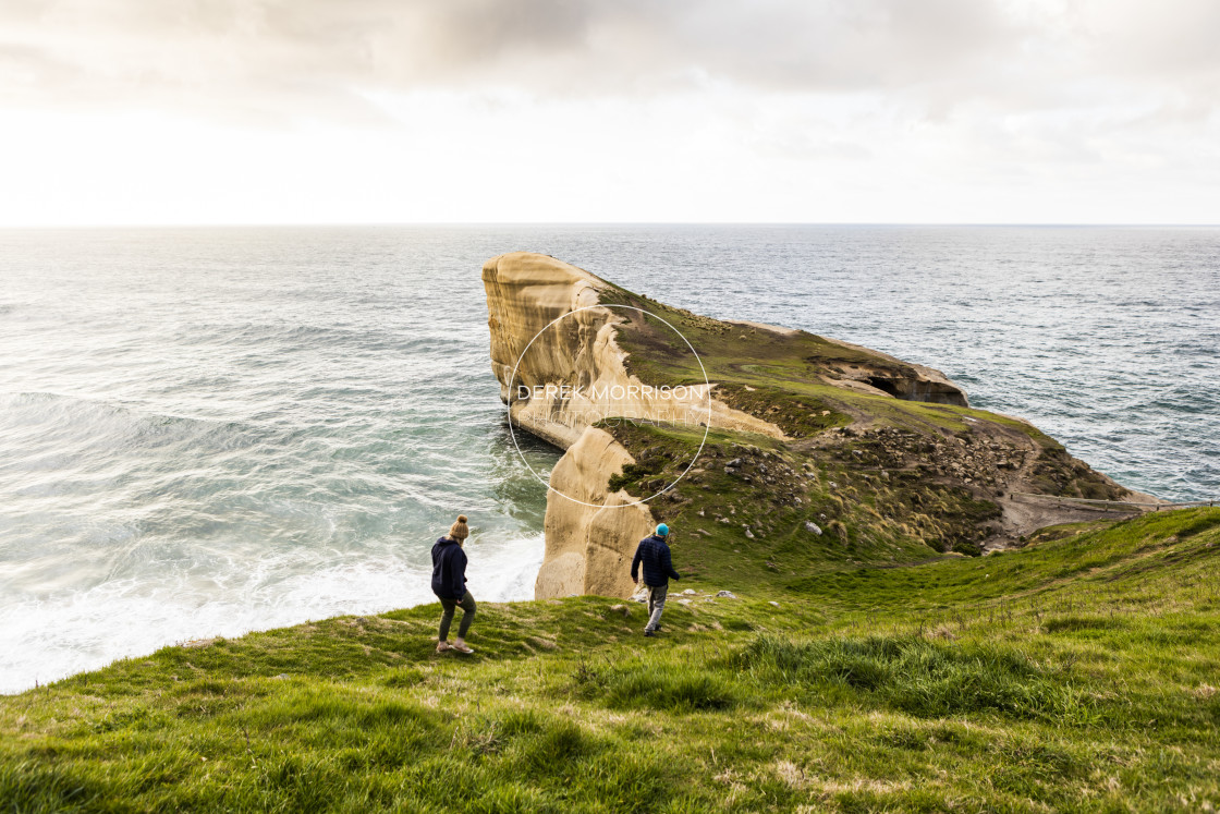 Stephanie Sykes and Dean Turner watch the sun rise at the iconic Tunnel Beach, Dunedin, New Zealand.