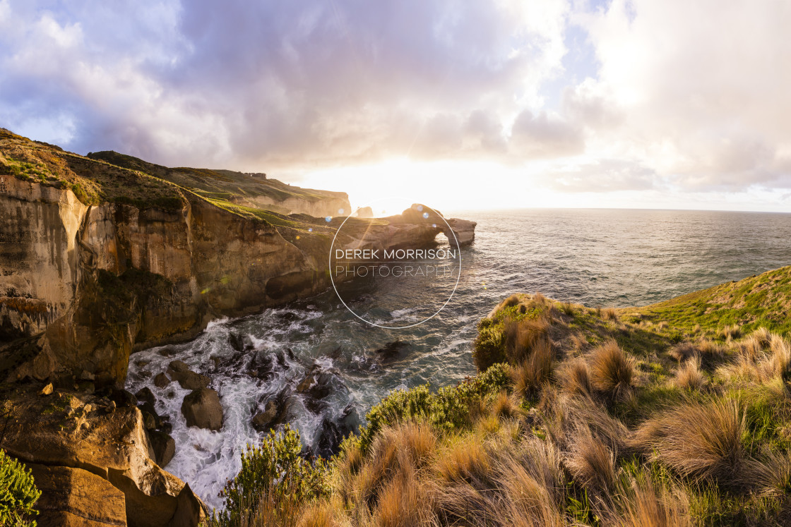 Sunrise at Tunnel Beach, Dunedin, New Zealand.