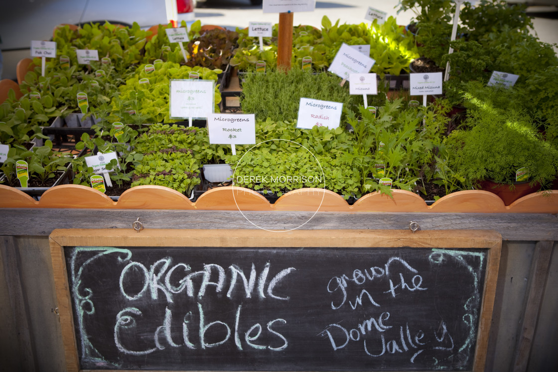 The Organic Edibles stand at the Matakana Markets. Matakana, New Zealand.