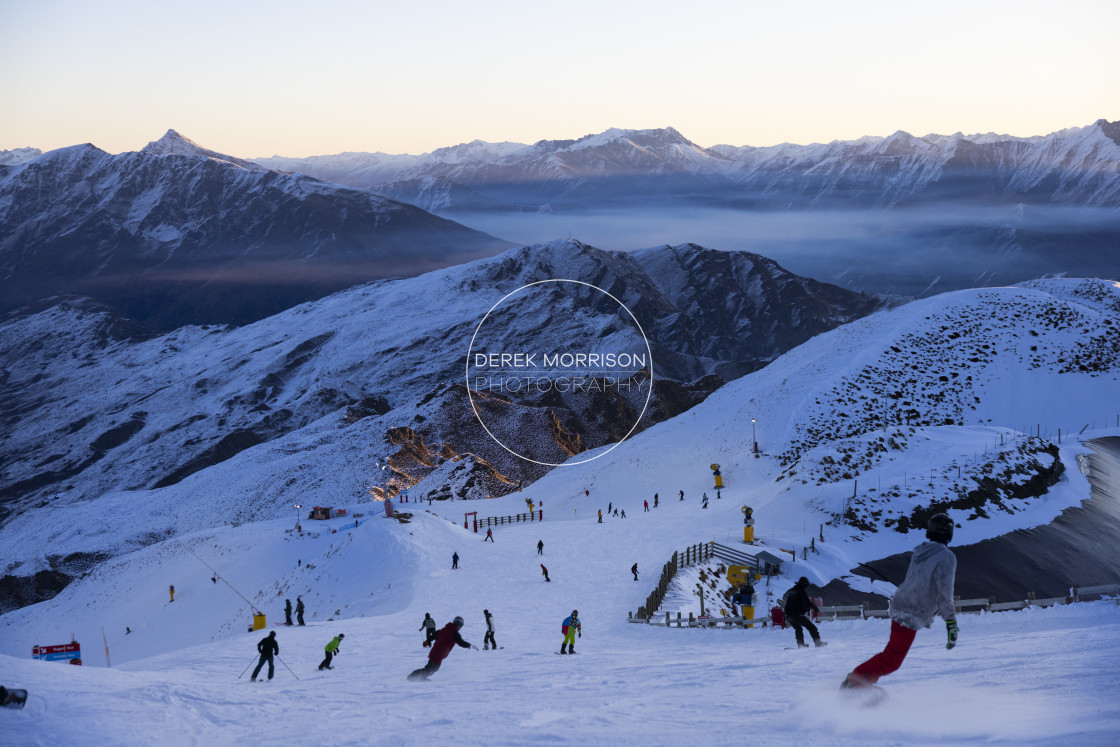 Night skiing at Coronet Peak ski field, Queenstown, Central Otago, New Zealand.
